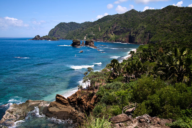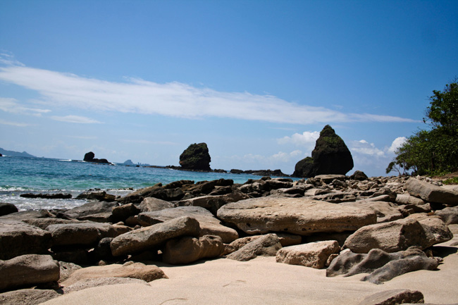 During their stay in Cape Papuma endlessly fascinated us would view that we are facing. Looks rock group in the middle of the sea with waves waves of crystal clear sea water. Adorn the white sand along the beach with stones Malikan a light-colored as if ordered to restrict the stretch of sand with the soil on the outside of the beach.